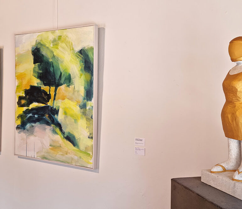 Gudrun-Sophie Frommhage und Uwe Kreutzkamp präsentierten ihre Werke vom 13. September bis zum 20. Oktober 2024 in der Zehntscheune Stadthagen. Das Konzept der Ausstellung basierte auf dem Dialog zwischen Frommhages keramischen Figuren und Collagen mit Märchenthemen und Kreutzkamps Mixed-Media-Malerei zu Landschaften und Natur, sowie der aktuellen Flüchtlingskrise. Beide Künstler, Absolventen der Hochschulen Braunschweig und Bremen, leben seit fast 20 Jahren in Schaumburg.